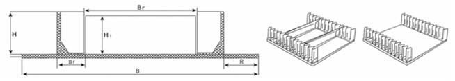 公司生產(chǎn)的橫隔板采用纖維復(fù)合材料制作而成,挺性大、增強耐沖擊性避免了隔板因受力而發(fā)生變形。在磨損較重的情況下,為維修方便,橫隔板可做成鋃嵌式,如TS和TCS。輸送機傾斜角度小于40度時,橫隔板用T型或TS型;傾斜角度大于40度時,橫隔板用C型、TC型或TCS型。