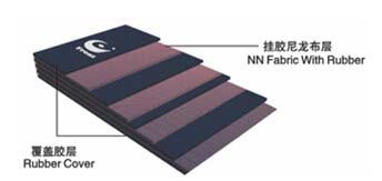 尼龍(NN)輸送帶:帶體彈性好,強力高,抗沖擊、耐曲撓性好,成槽性好,使用伸長小,適用于中長距離較高載量,高速條件下輸送物料。